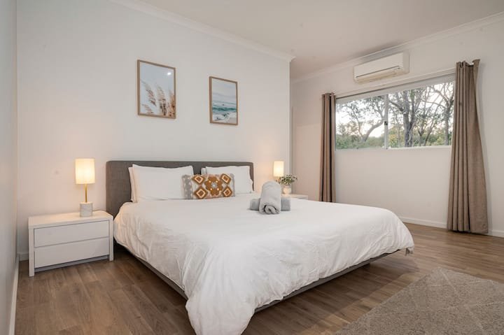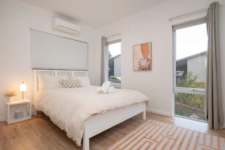 Maarli Retreat is a modern villa tucked among native bushland — a peaceful haven where comfort and nature meet. Surrounded by trees and birdlife, it offers a sense of seclusion while being just a three-minute drive from Dunsborough’s cafés, beaches and wineries.